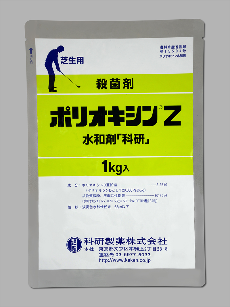 天然物由来の殺菌剤です。作用性が独自の「キチン合成阻害」のため、抵抗性対策としての薬剤ローテーションの一剤として適しています。芝の主要病害に対し優れた予防及び治療効果を示し、特にリゾクトニア菌による病害に対し優れた効果を発揮します。